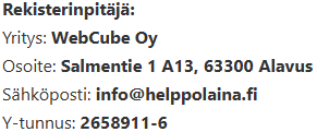 Huomaa, että nämä käyttöehdot koskevat vain Helppolaina.fi-sivustoa, eivätkä niitä luotonantajia, jotka myöntävät lainaa.